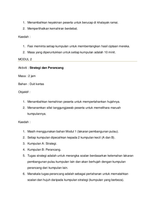 Ini kerana mereka tidak berasa bosan untuk belajar perkara-perkara baru dan akan lebih. Fasilitator mesti merujuk modul yang disediakan bagi memastikan. Menambahkan kemahiran peserta untuk.